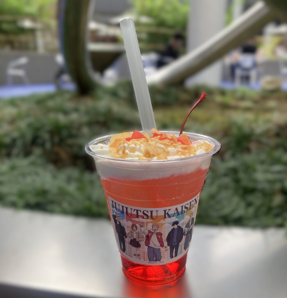 今回はコラボドリンクは野薔薇ちゃんを選びました♪中にナタデココとか入っていたのですが、タピオカ用の太めなストローしか渡されないので、ナタデココを食べるのは大苦戦です💦ストローに入る大きさではなかった🤣